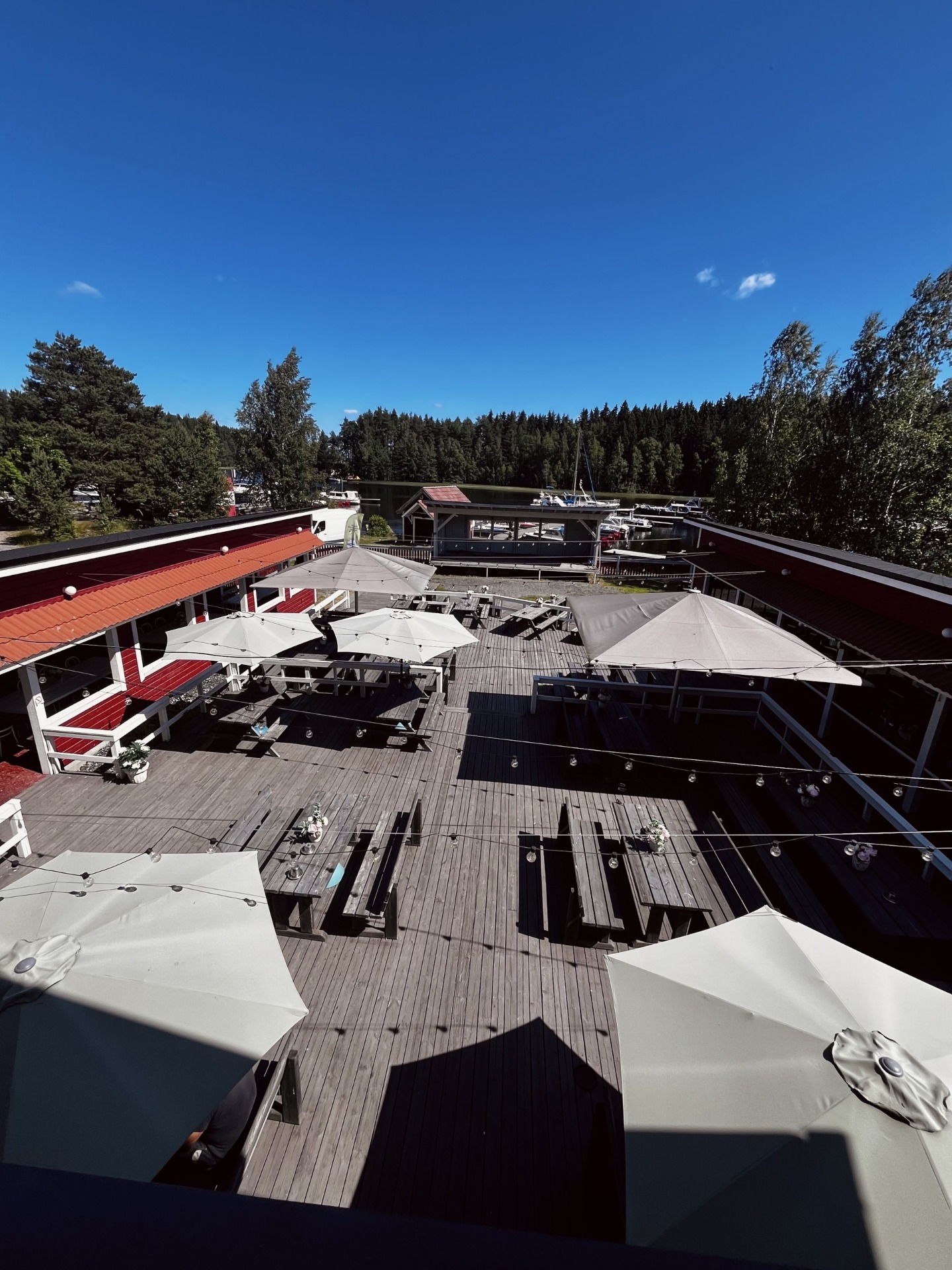 Ravintolamme on auki kesäisin, jolloin voit nauttia hyvästä ruuasta ja virvokkeista suurella terassilla.